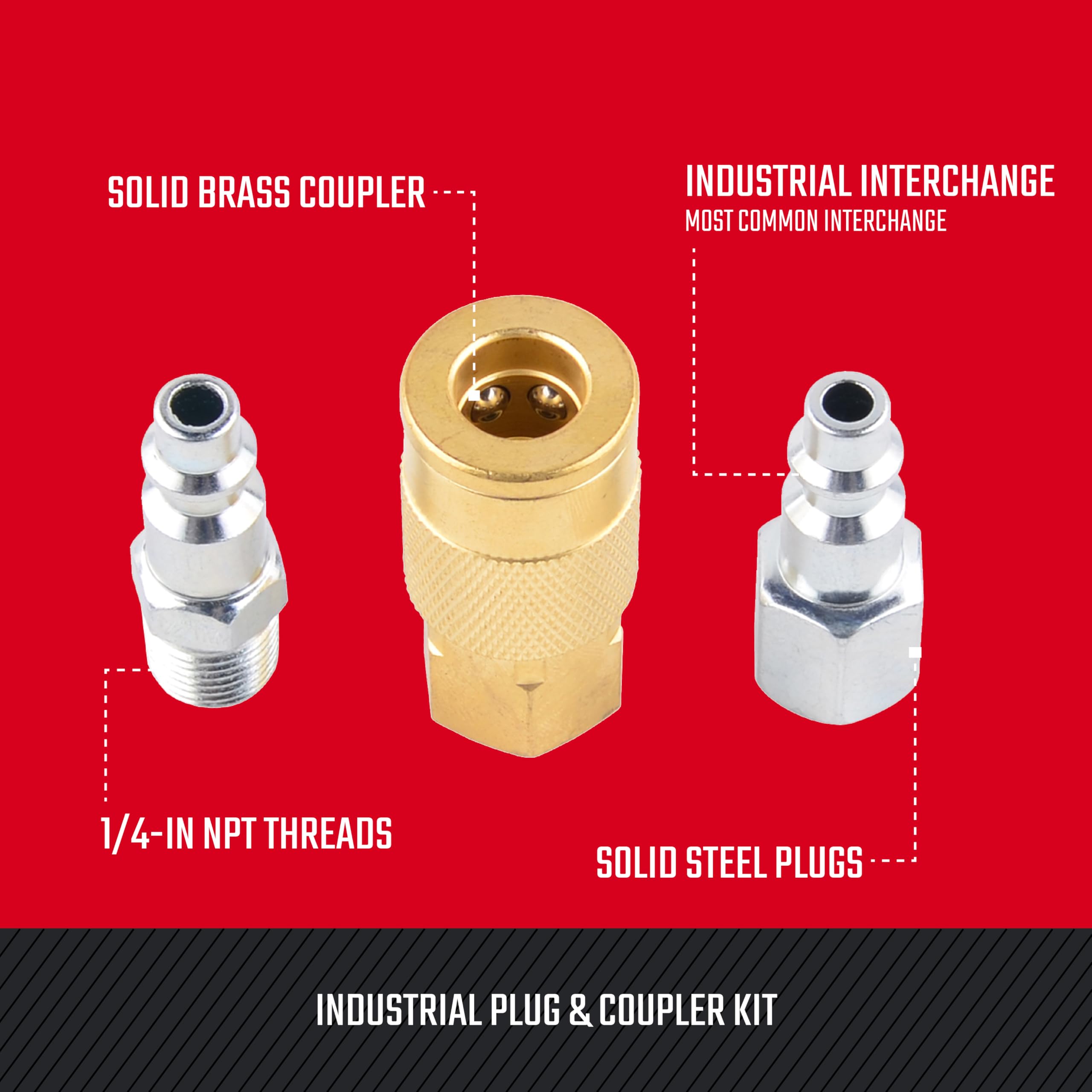 - Designed for compatibility with 1/4-in Industrial (I/M) plugs and couplers, the most common interchange standard