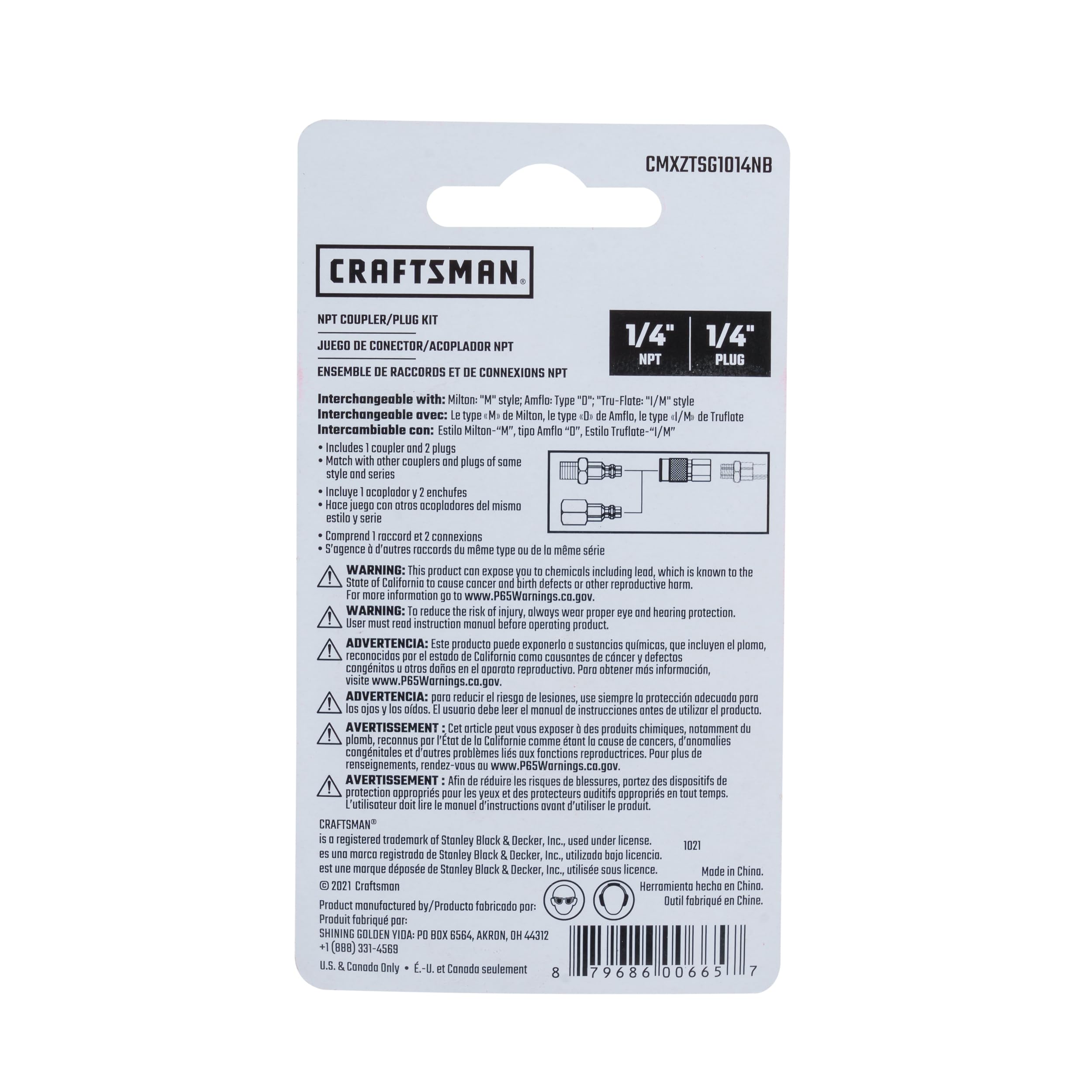 CRAFTSMAN 1/4-in NPT Universal Coupler/Plug Kit, 3-Piece, Industrial Interchange, Steel and Brass Construction