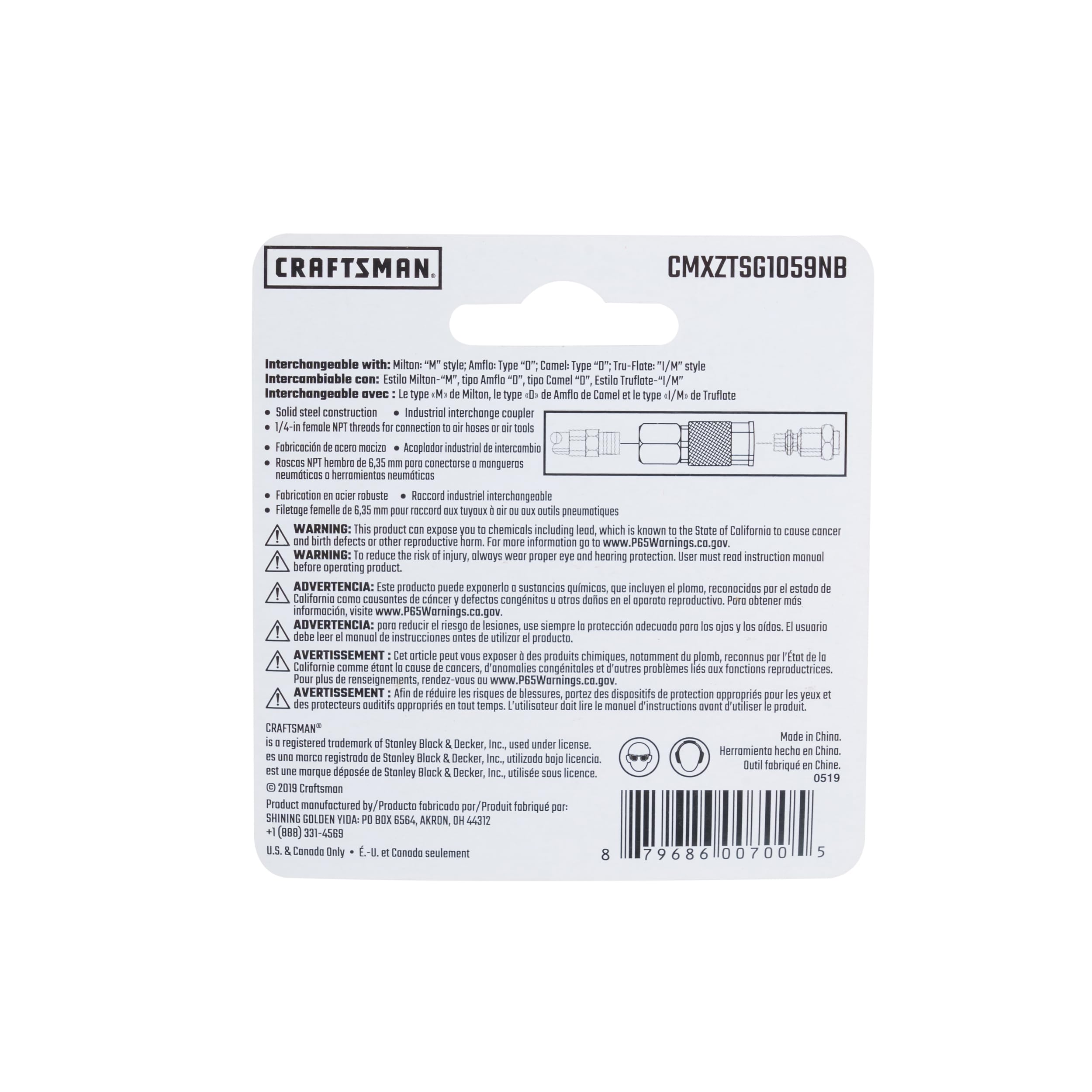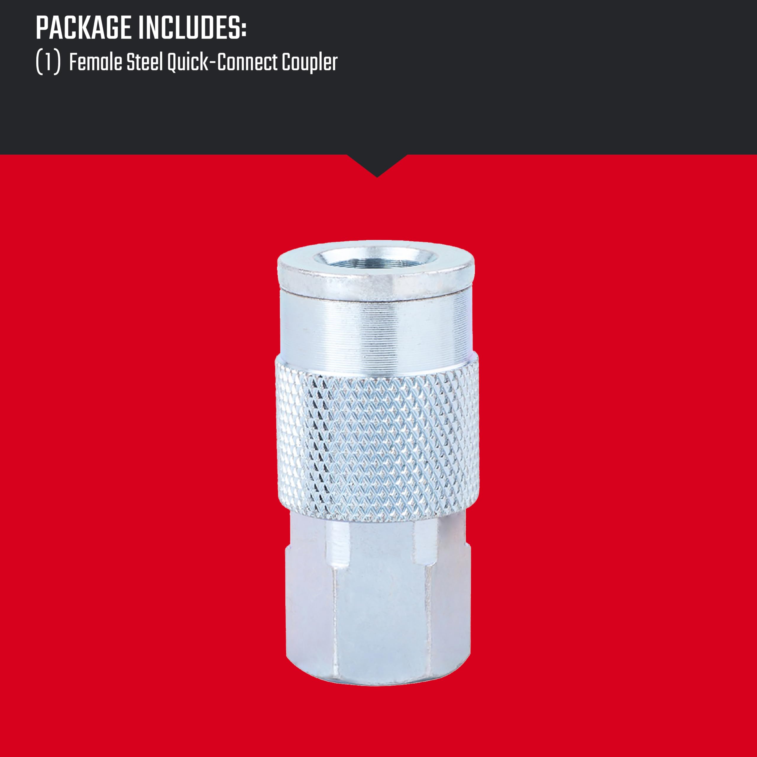 CRAFTSMAN 1/4-in Steel NPT Female Coupler for Air Hose Fittings, Quick Connector Coupler, Industrial Interchange