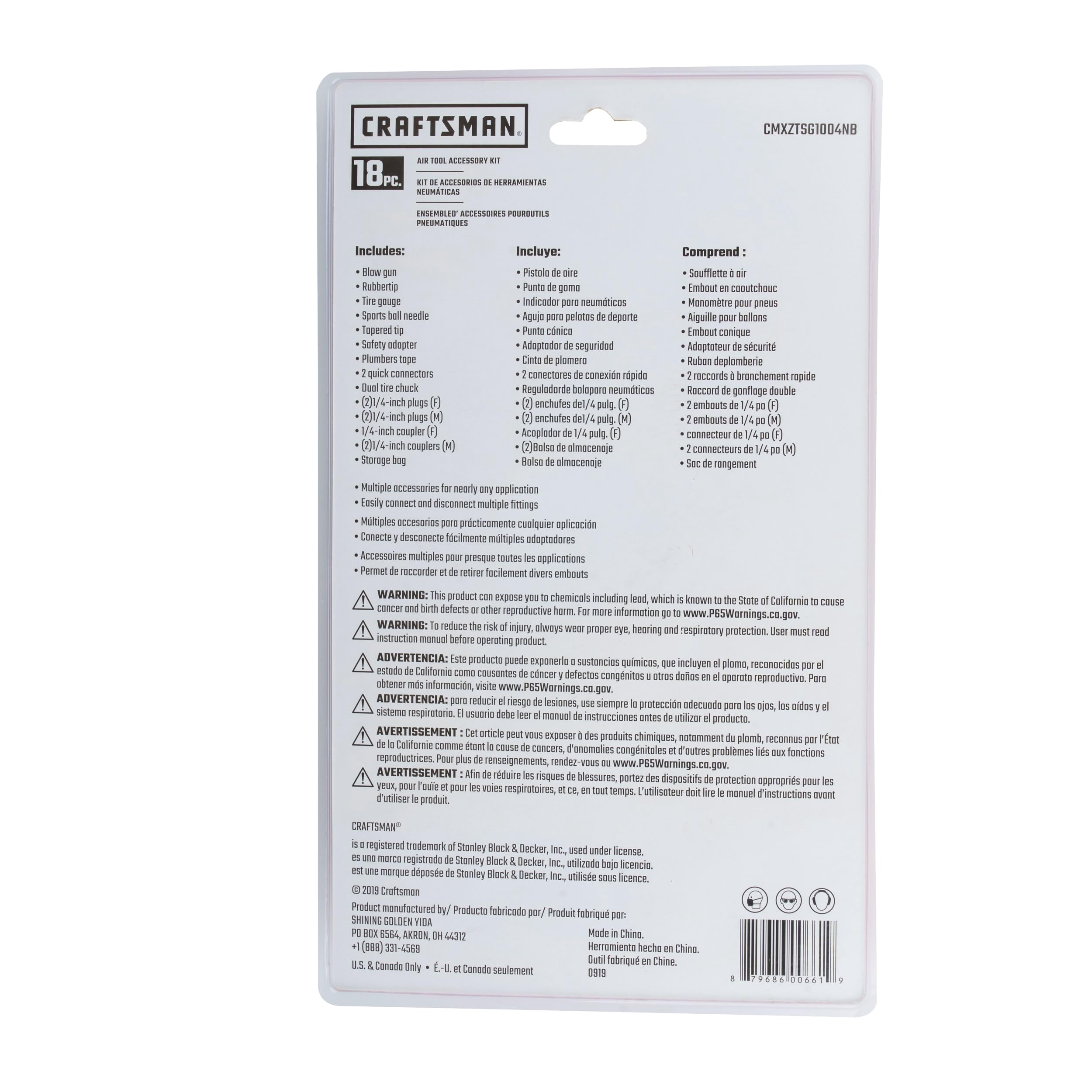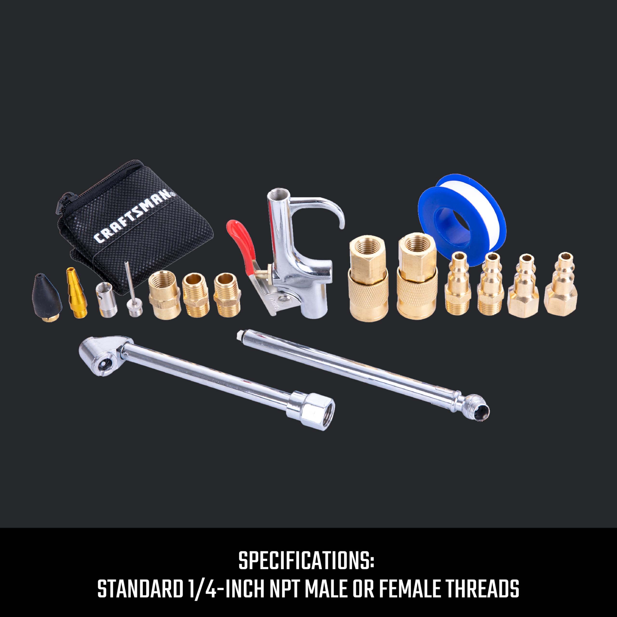 CRAFTSMAN 18-Piece Air Compressor Accessory Kit, Includes Blow Gun, Tire Inflator, Brass Fittings, and Storage Bag