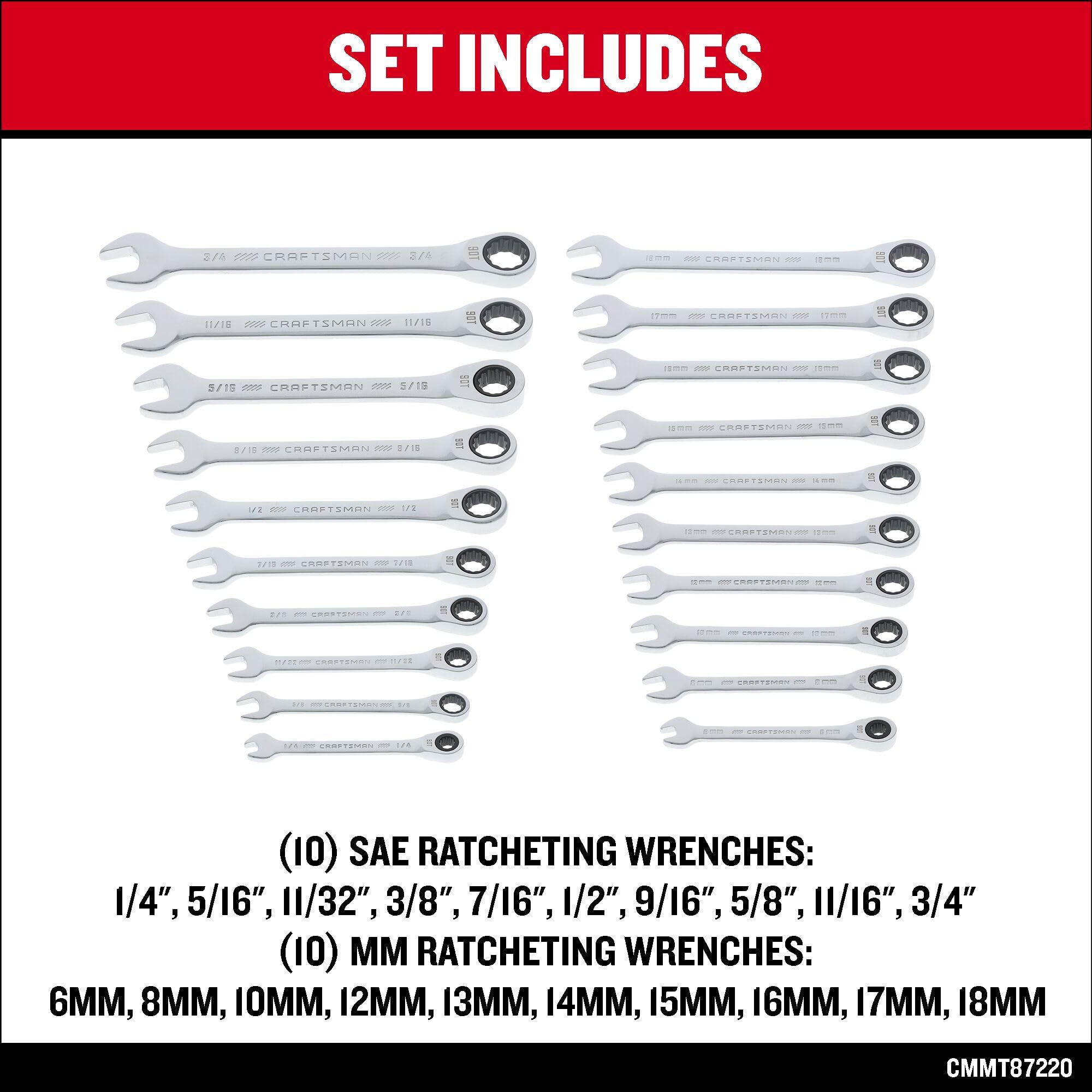 CRAFTSMAN 20 Piece Ratcheting Combination Wrench Set, SAE/Metric (CMMT87220)