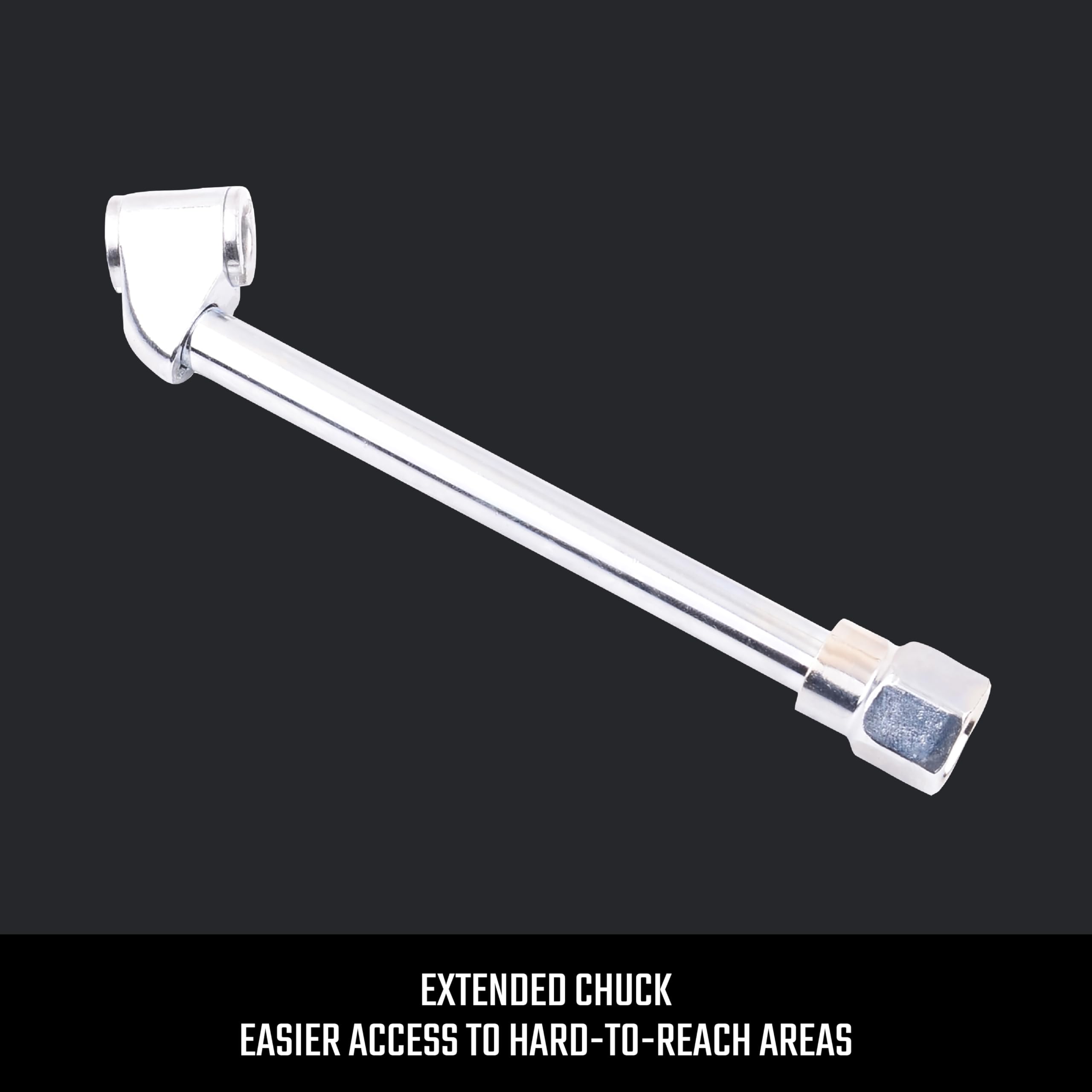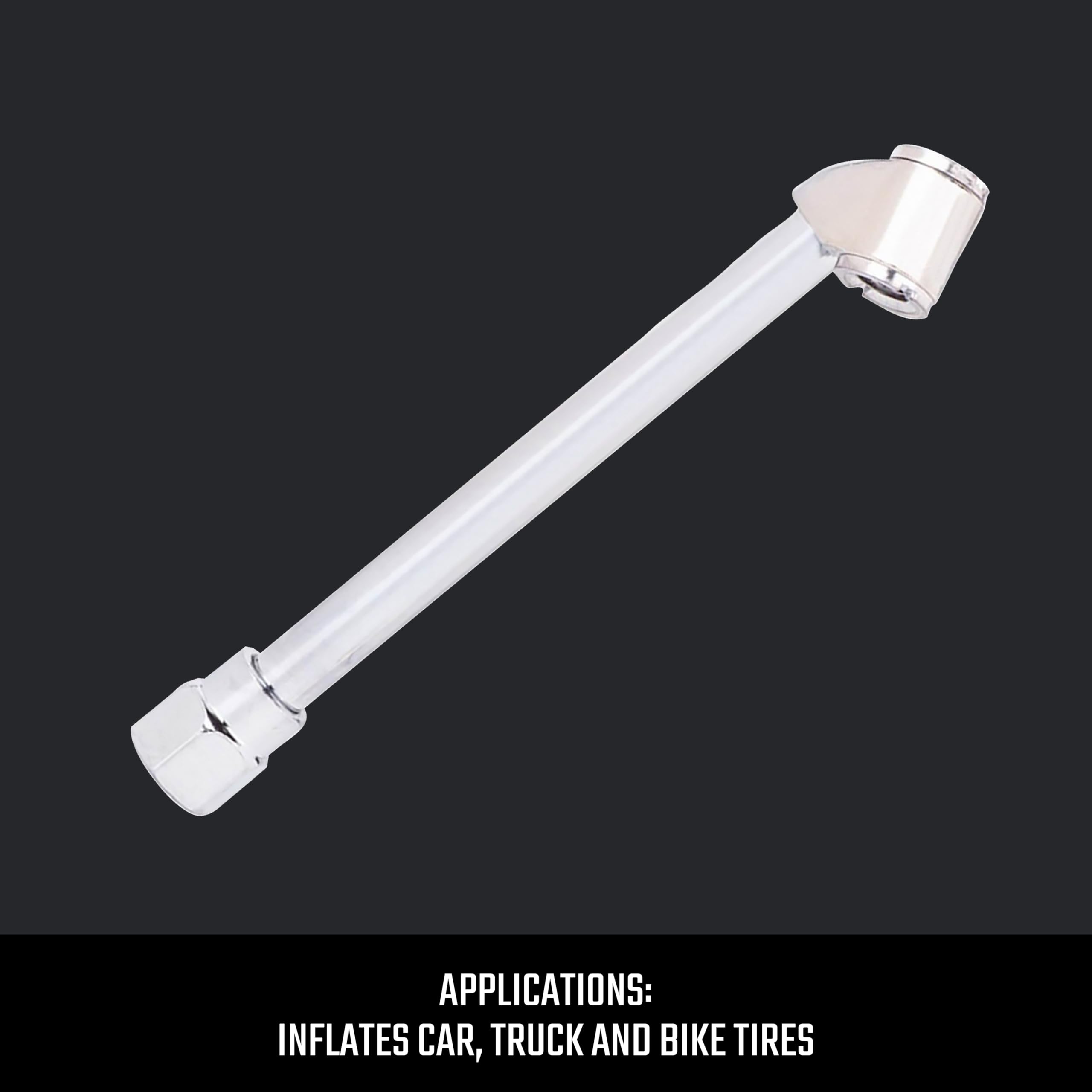 - The extended air chuck allows access to hard-to-reach tire valves, making it ideal for larger vehicles and deeper-set valve stems