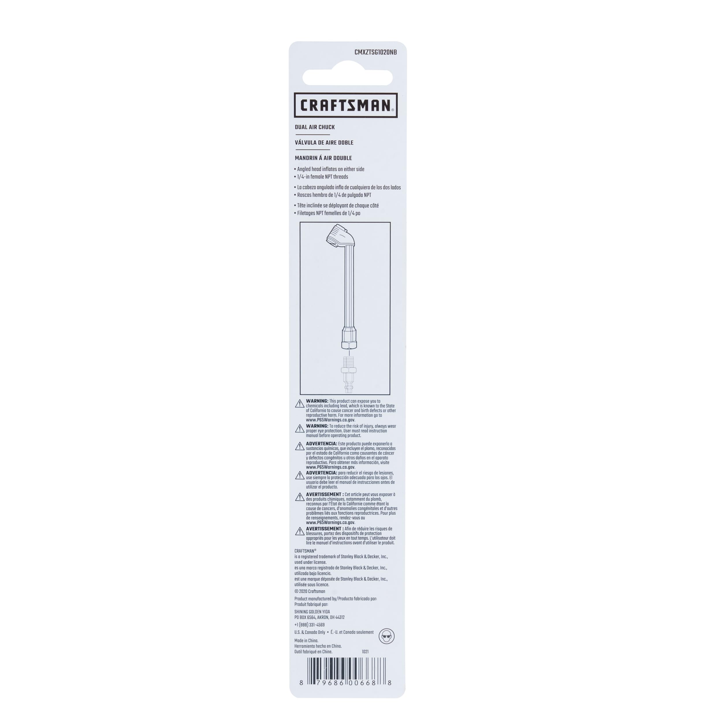 CRAFTSMAN Dual Air Chuck, 1/4-in Female NPT Threads, Extended Reach for Hard-to-Reach Valves