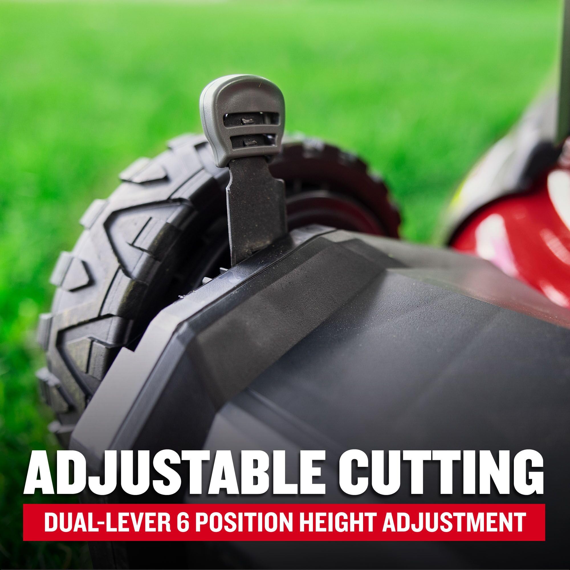 - Adjustable Cutting – Change cutting heights from 1.25-in. to 3.75-in. with the dual-lever 6 position height adjustment.