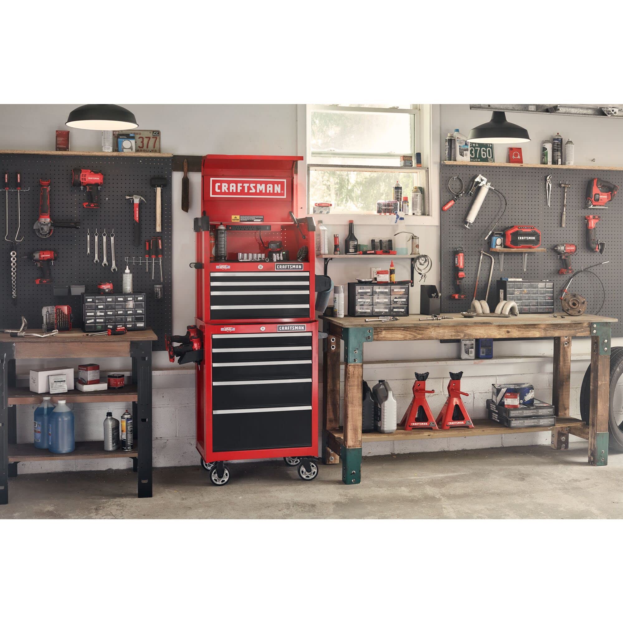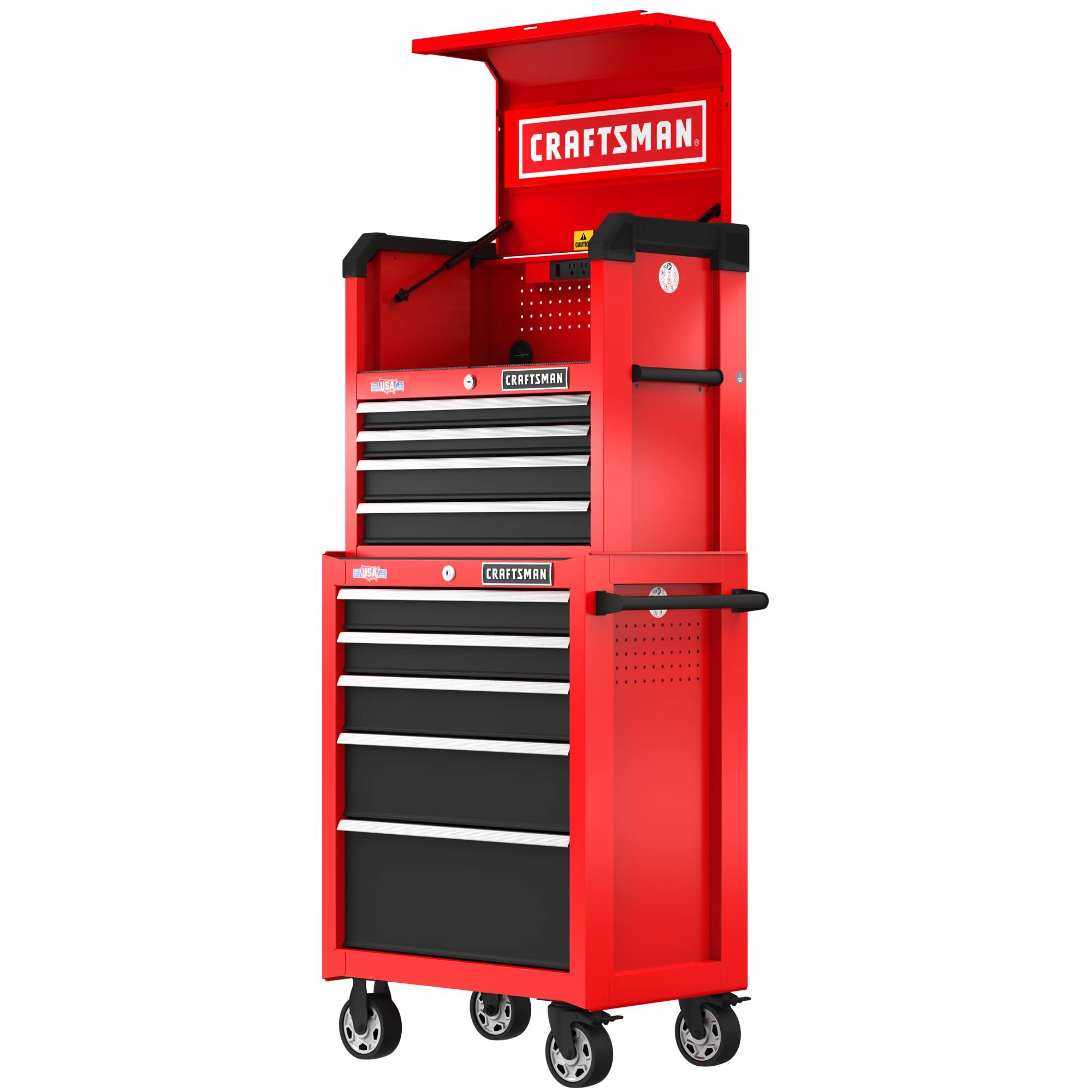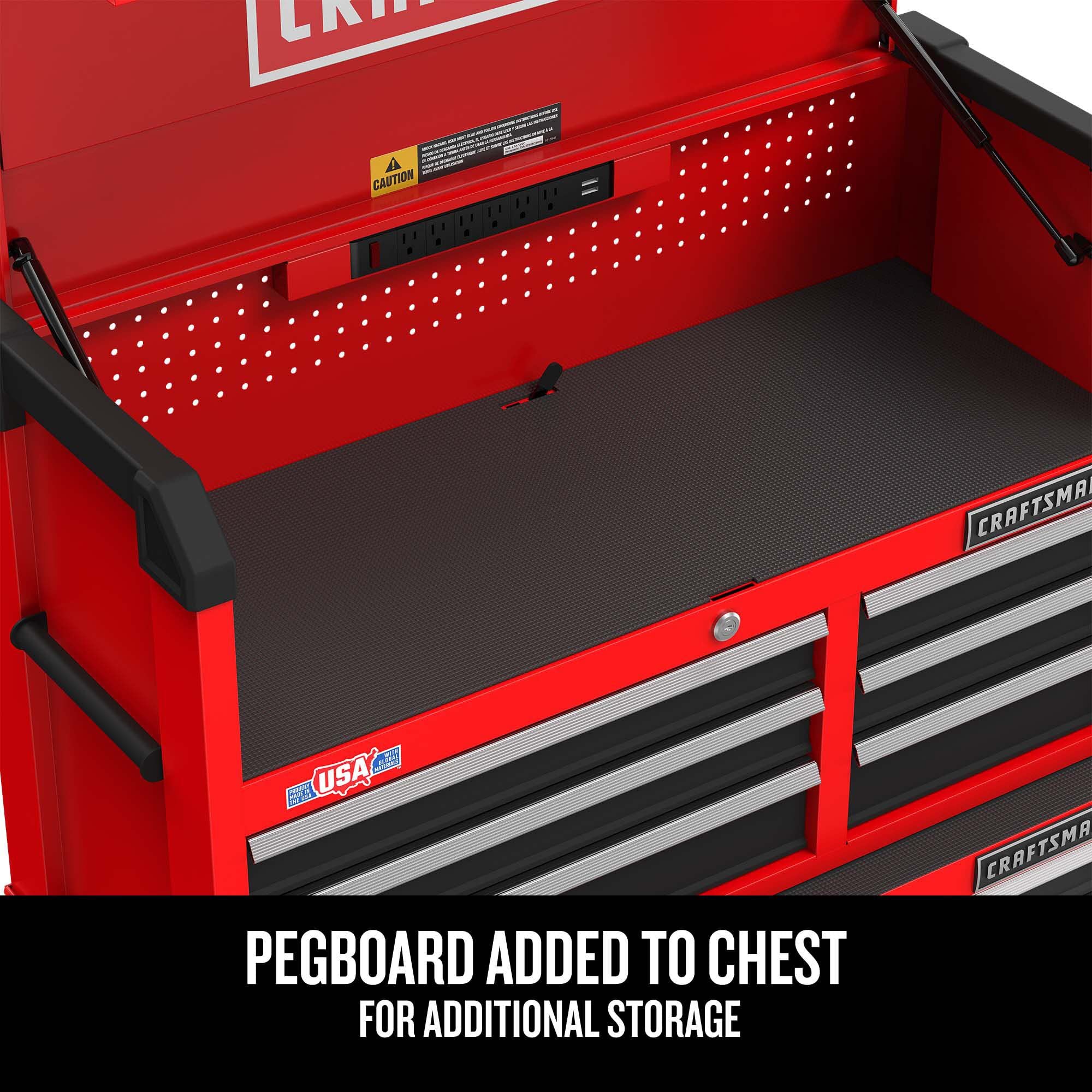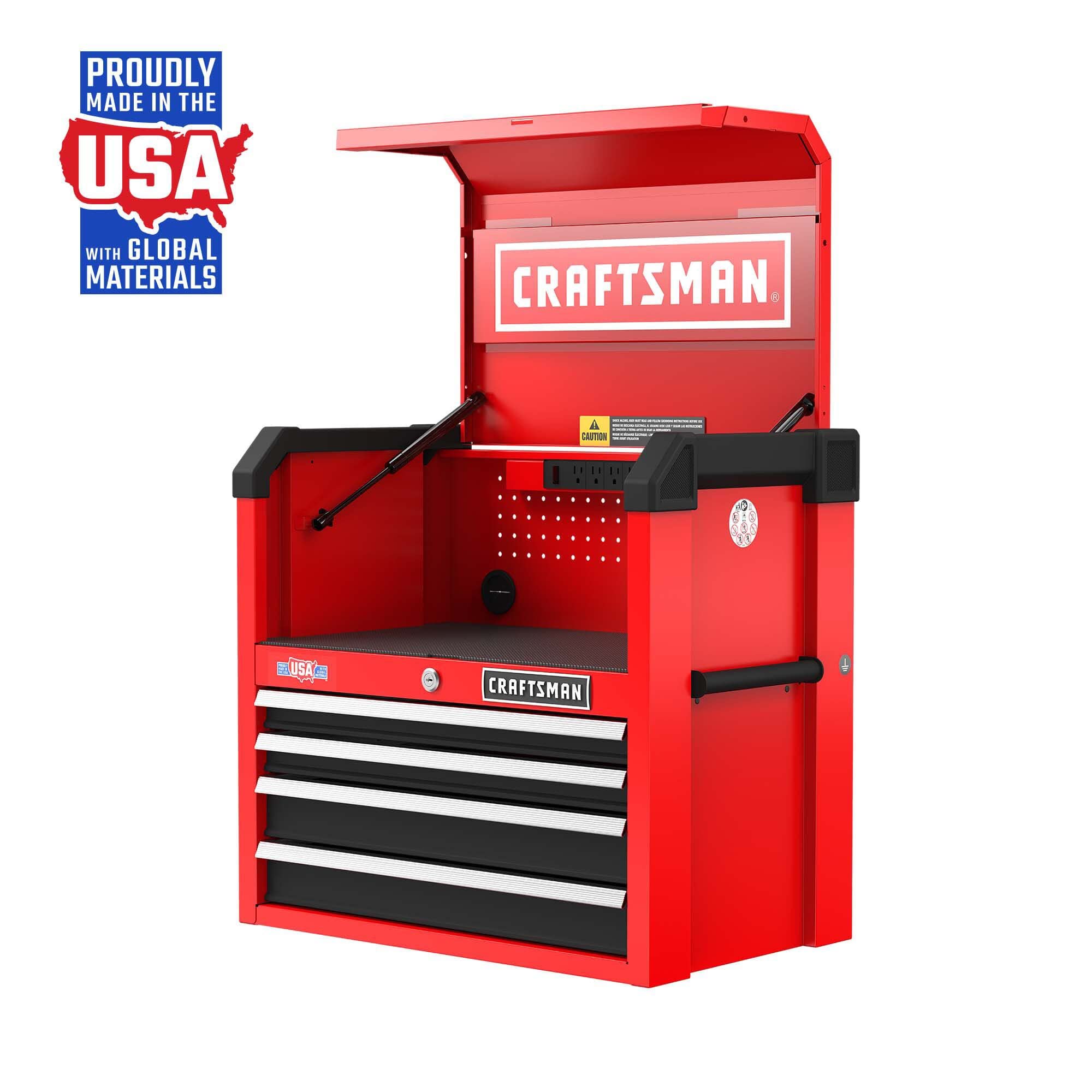 - QUICK ACCESS TO CHARGING AREA: Gas struts support tool chest lid