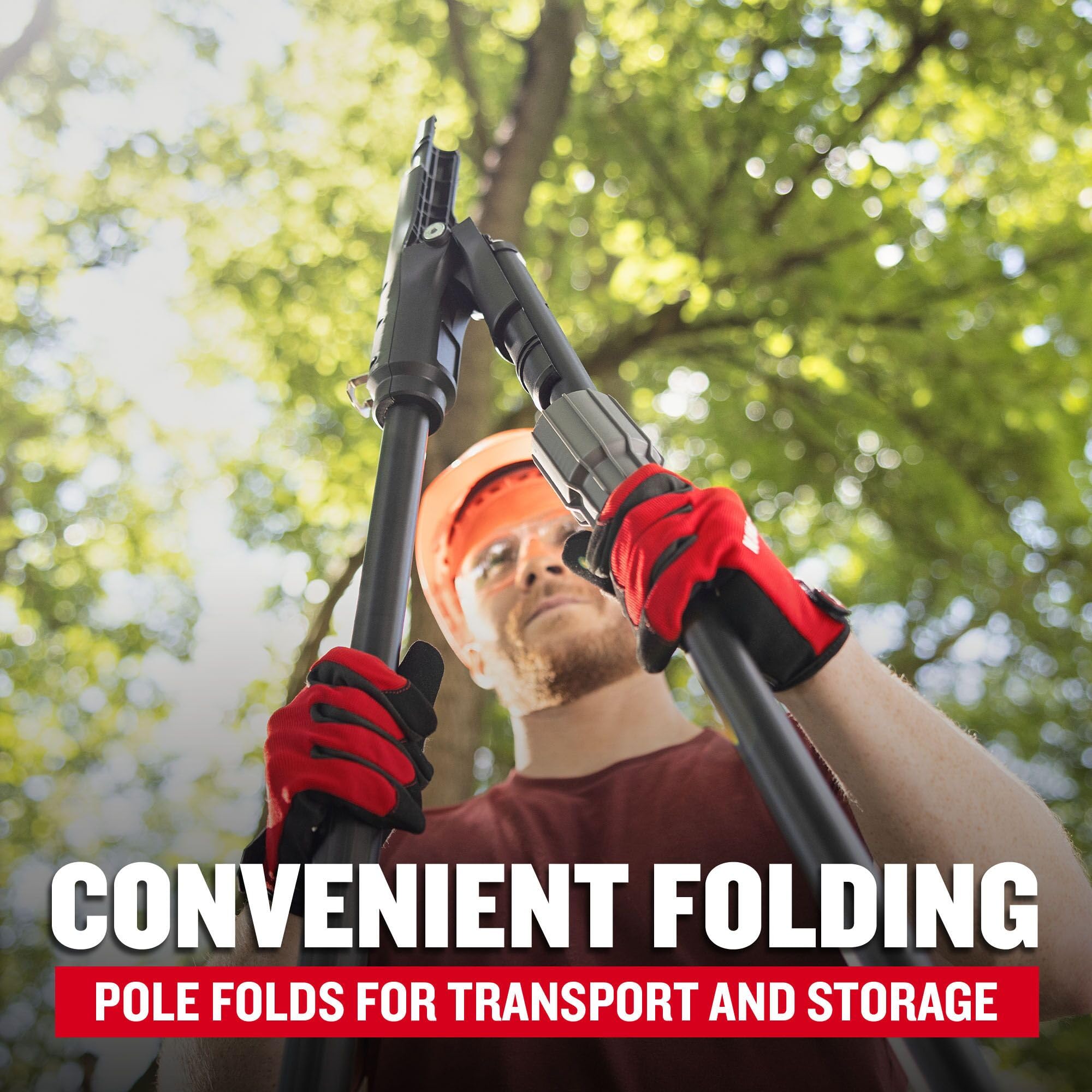 - Extended reach – 10 ft. pole folds for convenient transport and storage.