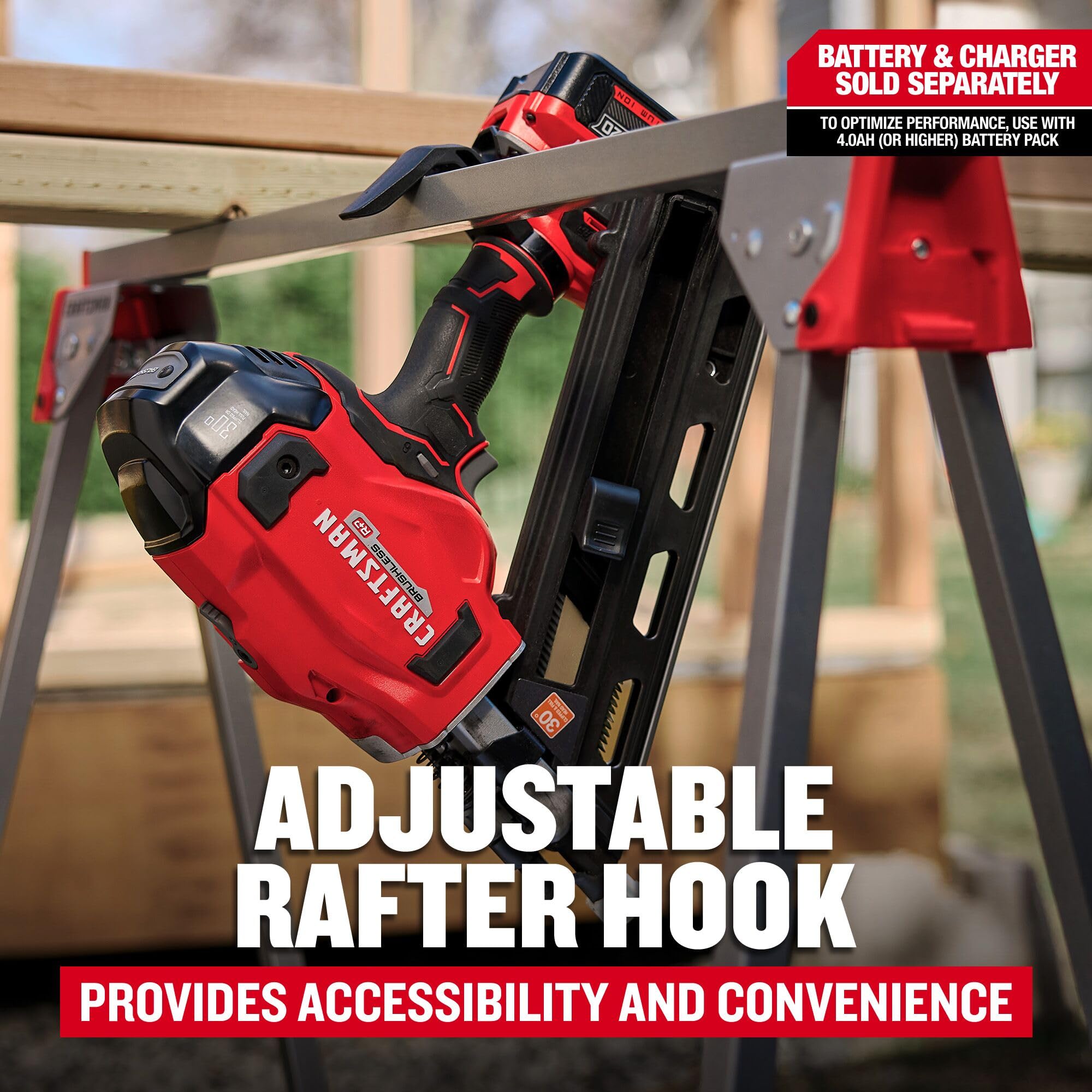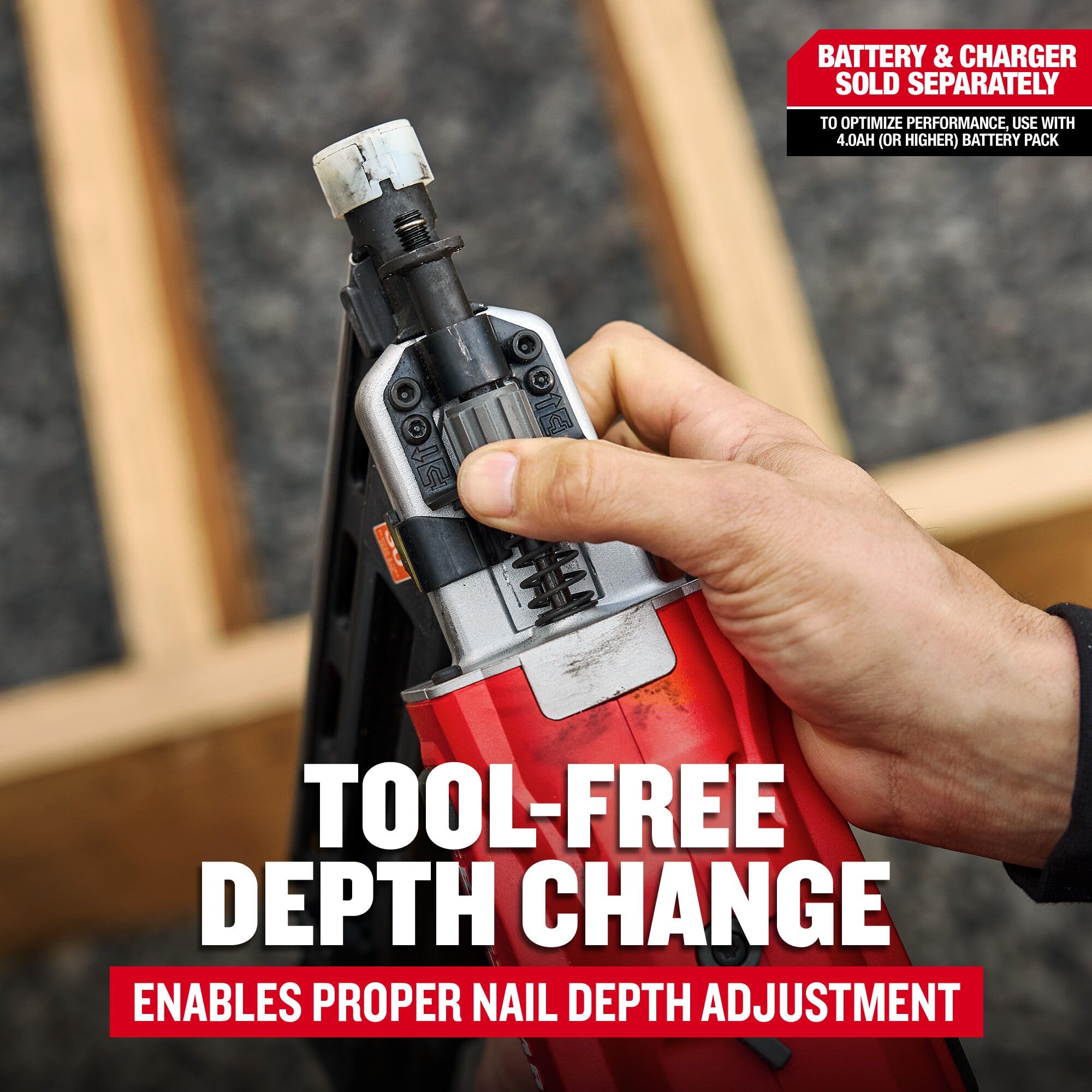 - Tool-Free Depth Change – Enables quick nail adjustment for proper nail depth.