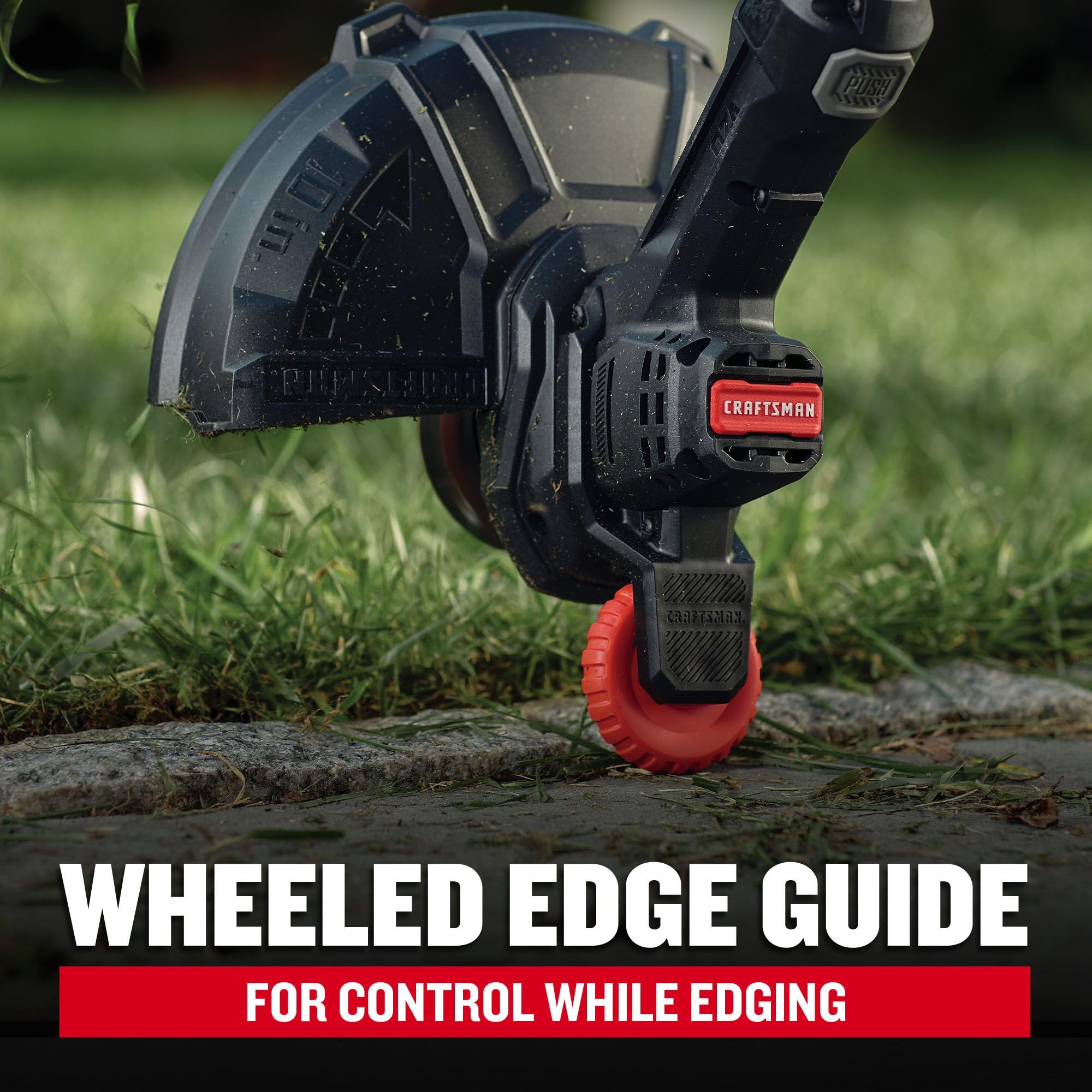 - Quick and convenient edging with turn-to-edge feature and integrated wheeled edge guide