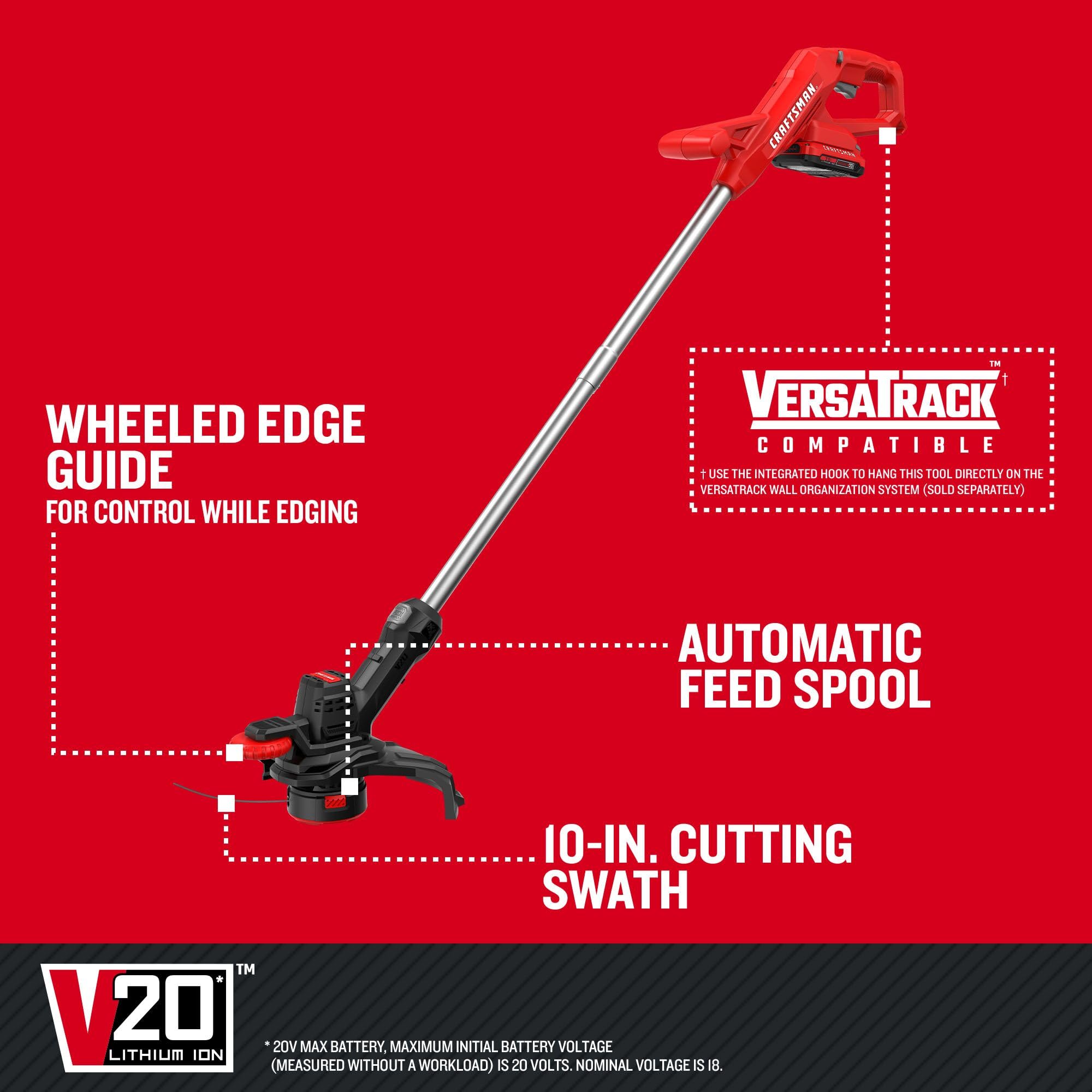 CRAFTSMAN V20 Cordless 10 in. WEEDWACKER String Trimmer and Edger Kit with 2.0 Ah Battery and Charger (CMCST915D1)