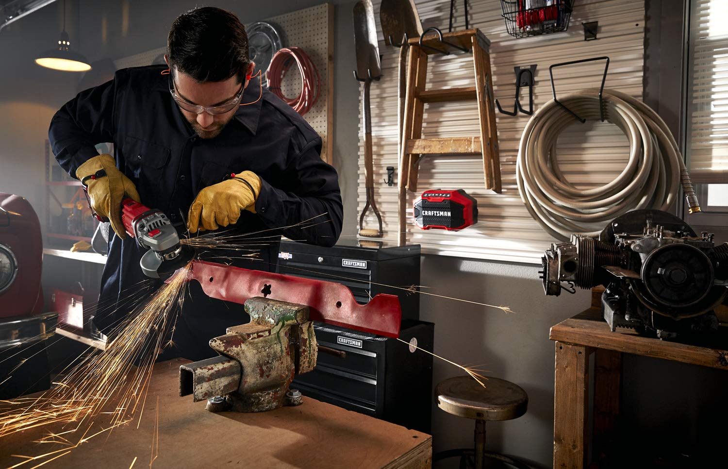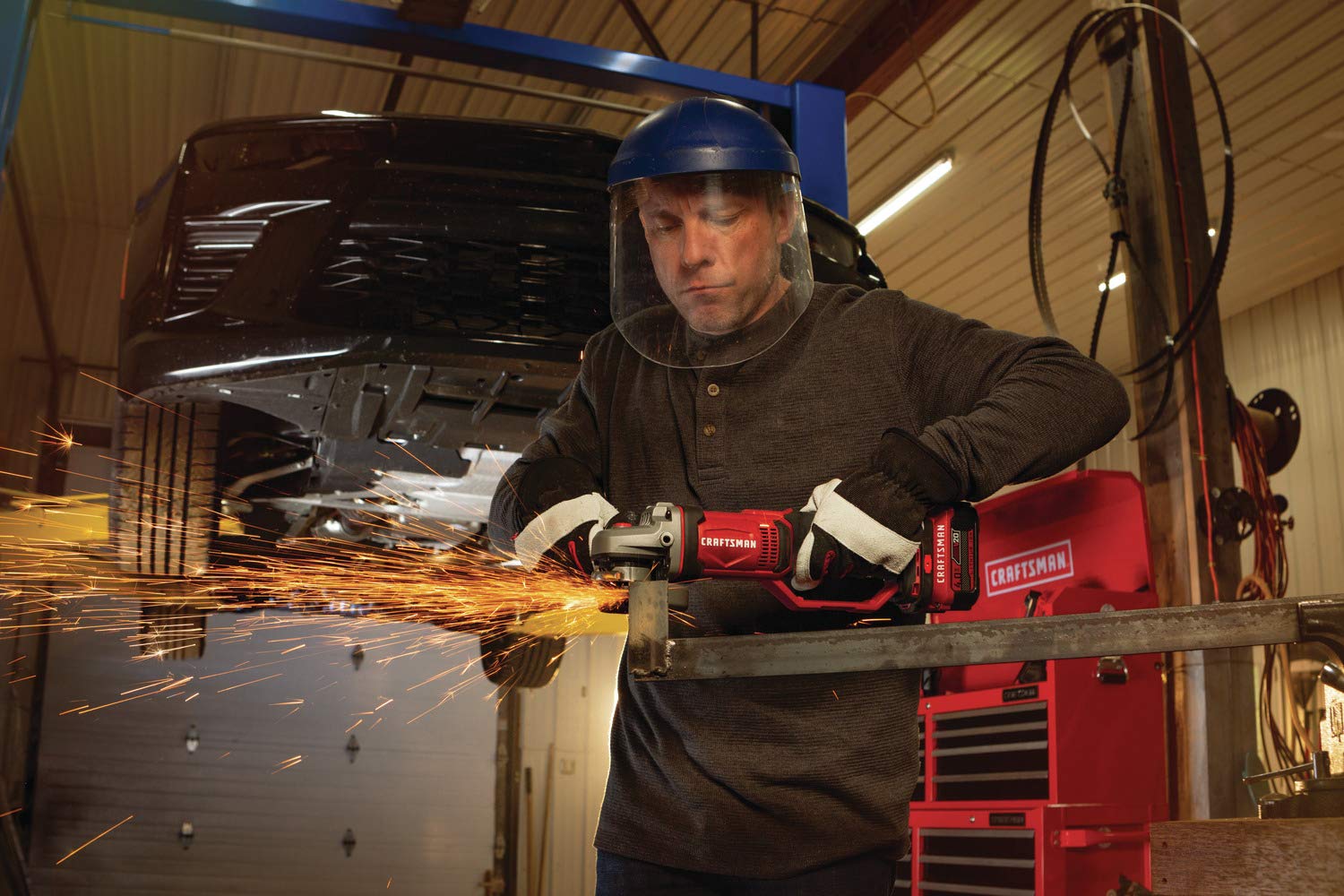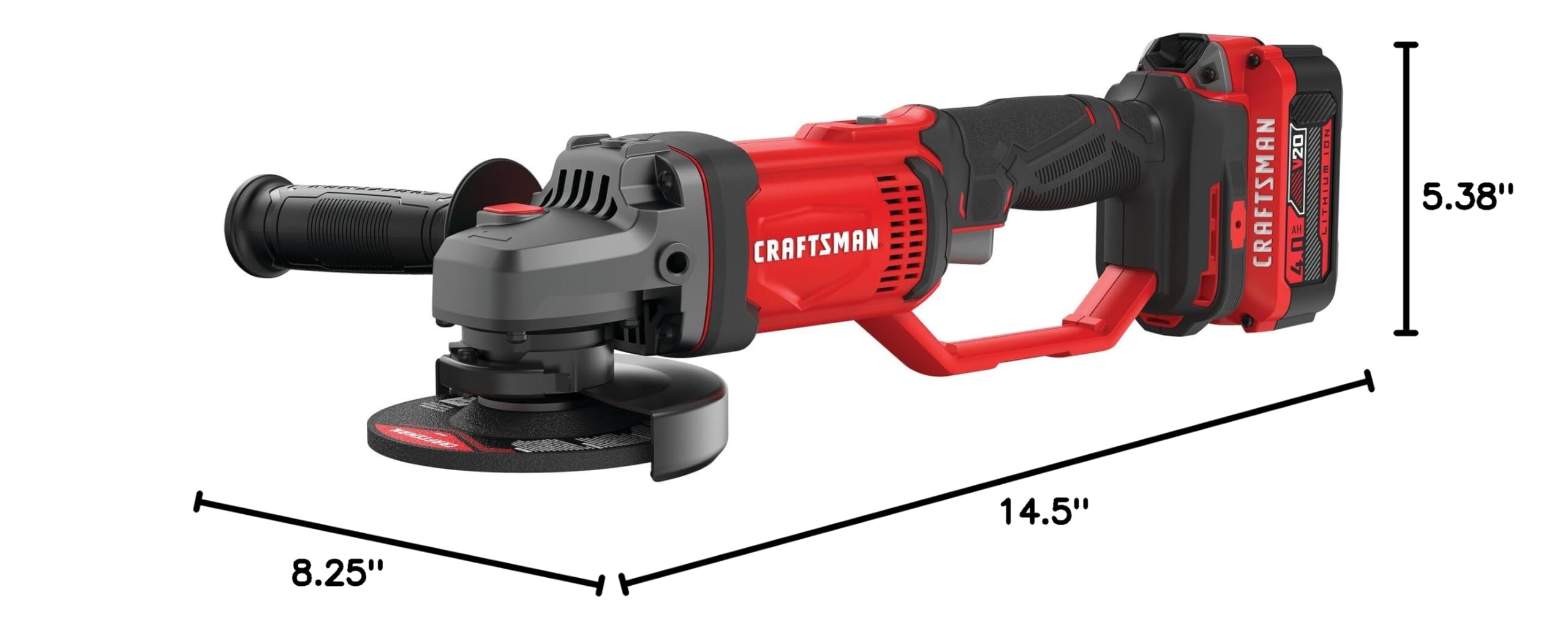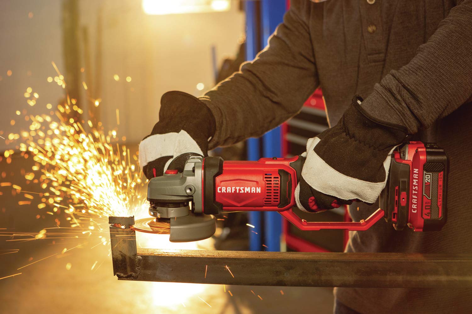 CRAFTSMAN V20 Cordless Angle Grinder Tool Kit, 4-1/2 inch, Battery and Charger Included (CMCG400M1)