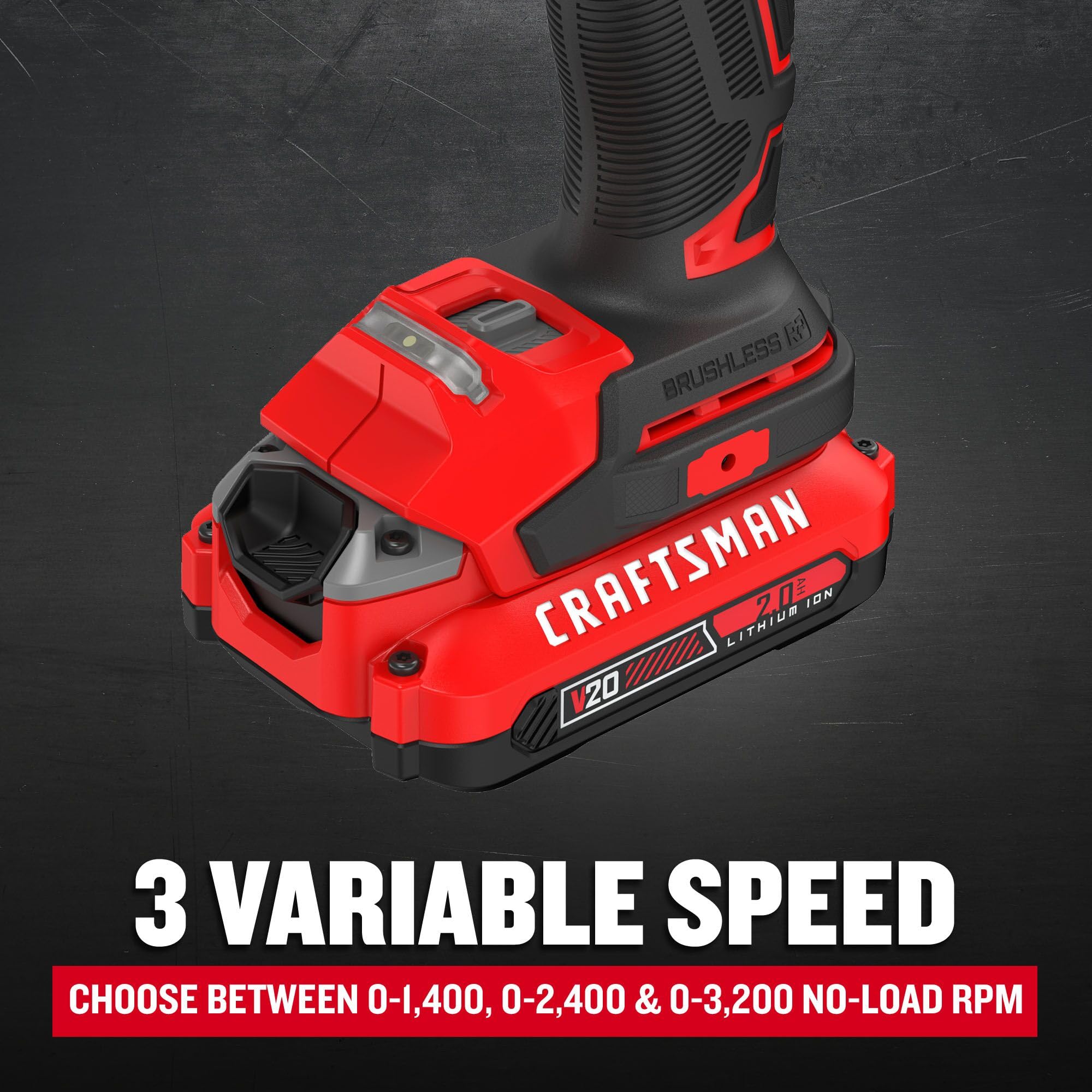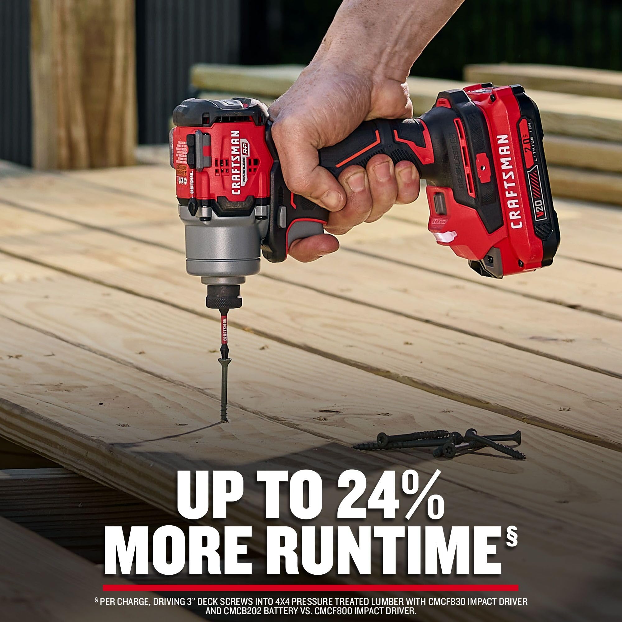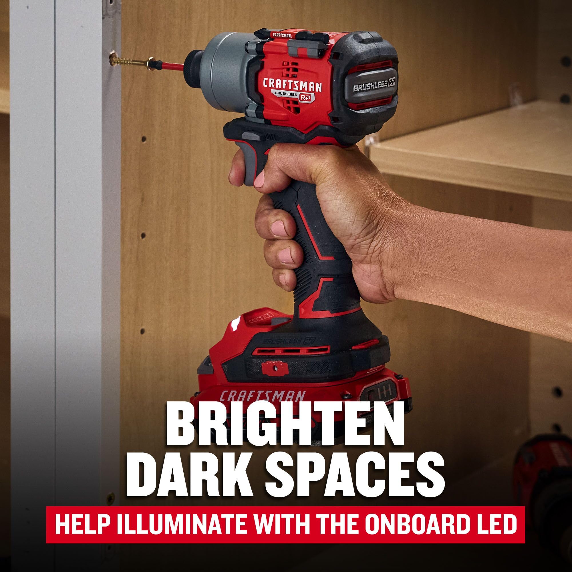 CRAFTSMAN V20 Cordless Brushless Impact Driver Set, 1/4 Impact Driver, Includes 2 Batteries and Charger (CMCF830D2)