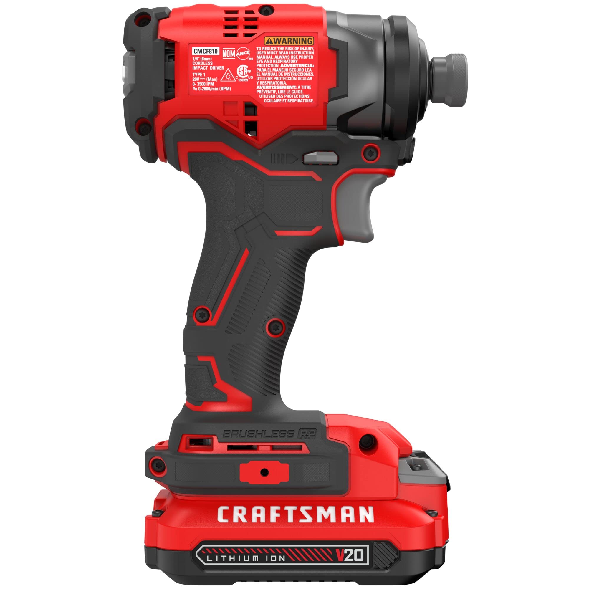 CRAFTSMAN V20 Cordless Impact Driver, 1/4 inch, Battery and Charger Included (CMCF813C2)