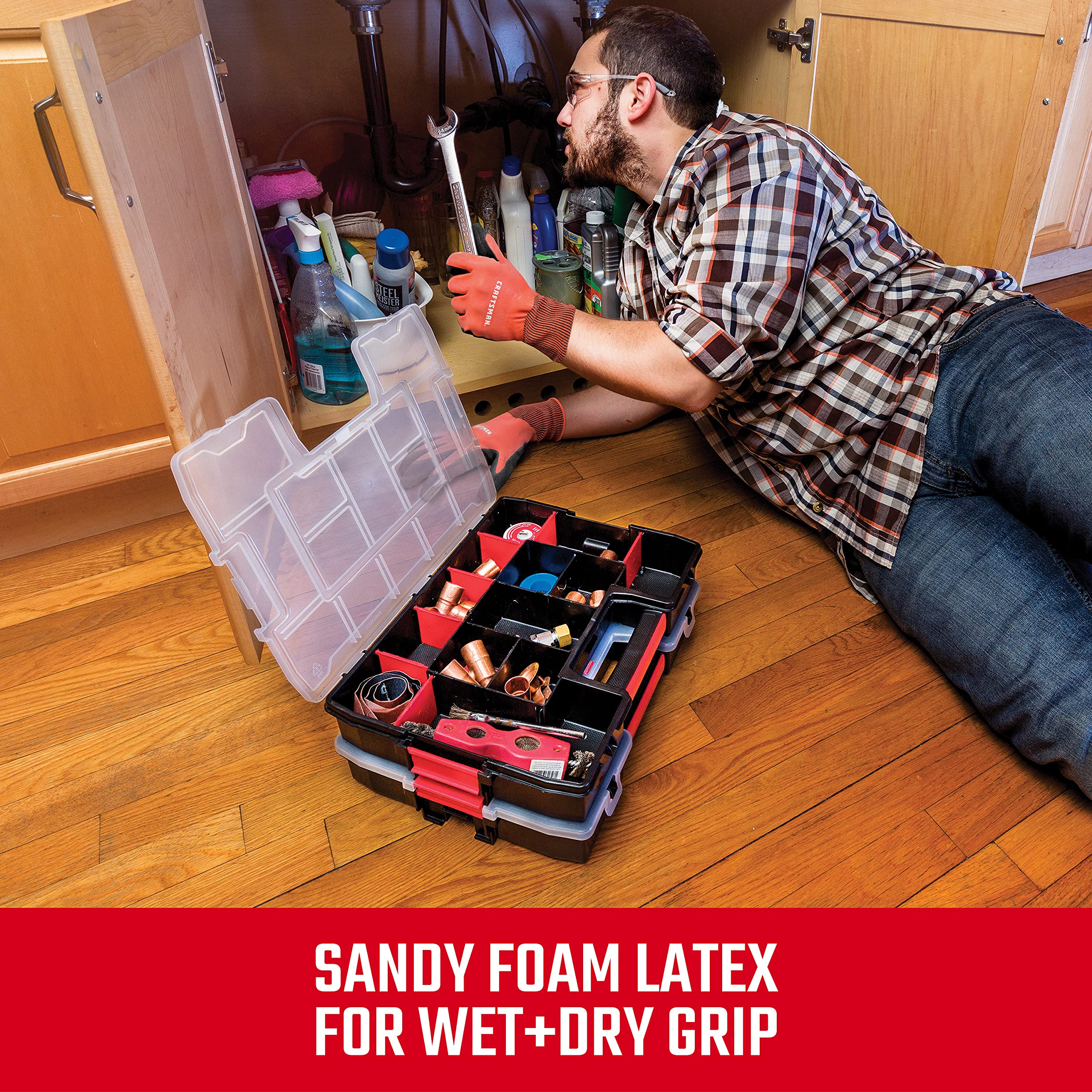 Radians Craftsman Sandy Foam Latex Waterproof Grip Glove (Large), Red (CMXPGRA18L)